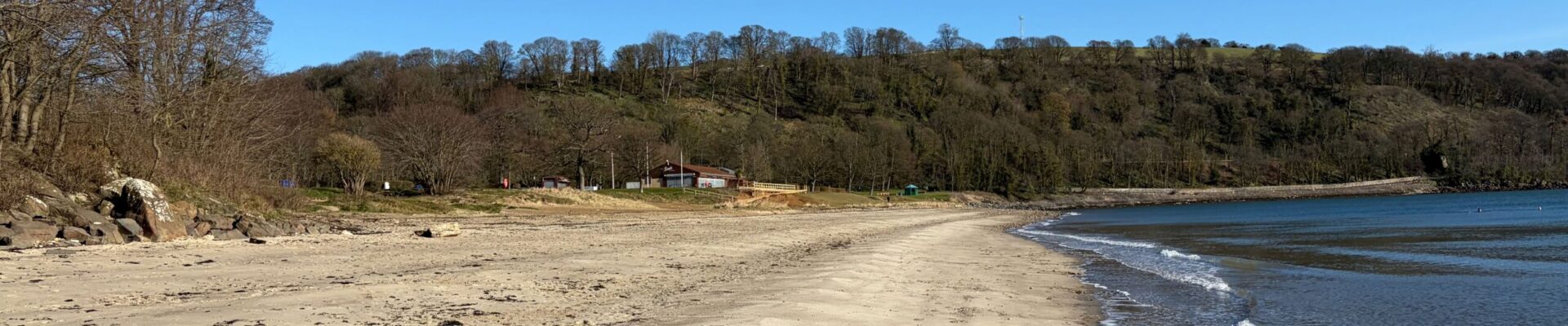I’m impressed with Aberdour. It feels like a peaceful, well maintained and attractive village. To the east of the village lies the popular Silver Sands beach, and it looks like there’s been a lot of recent investment to open up accessibility and improve facilities here – a large car park, motor home charging, changing huts and an under construction cafe. A few hardy swimmers are taking a dip and some dog walkers are about, but it’s otherwise quiet, even on this sunny Saturday morning. Across the bay are the islands of Inchmickery and Inchcolm.