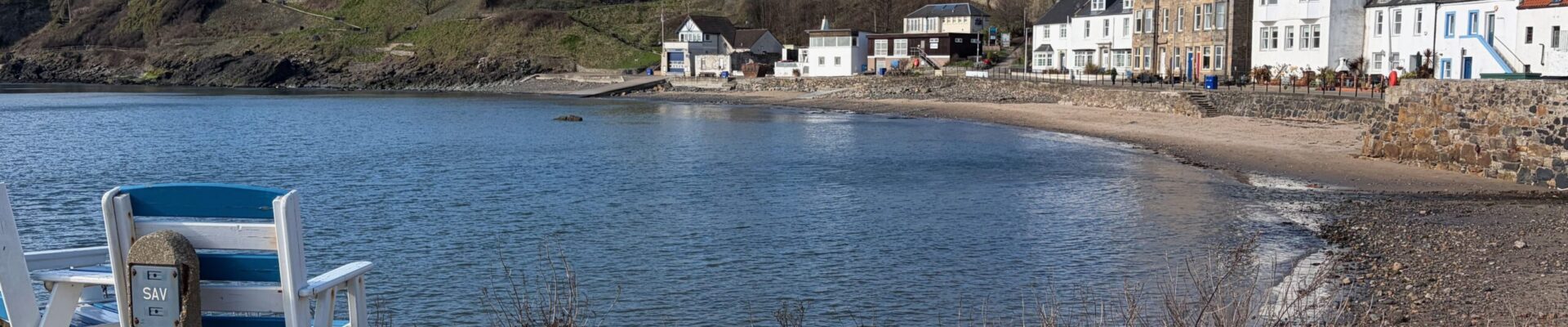 Before I leave the lovely village of Kinghorn, I pop down to the small harbour. I’m glad I have because the walk down the hill passes some lovely old characterful houses with coloured doors and beautifully presented gardens. The harbour itself is immaculate, with a lifeboat station at one end, and the small beach sets it off nicely. Apparently the harbour toilets were honoured in the 2025 Loo of the Year Awards. Beat that.