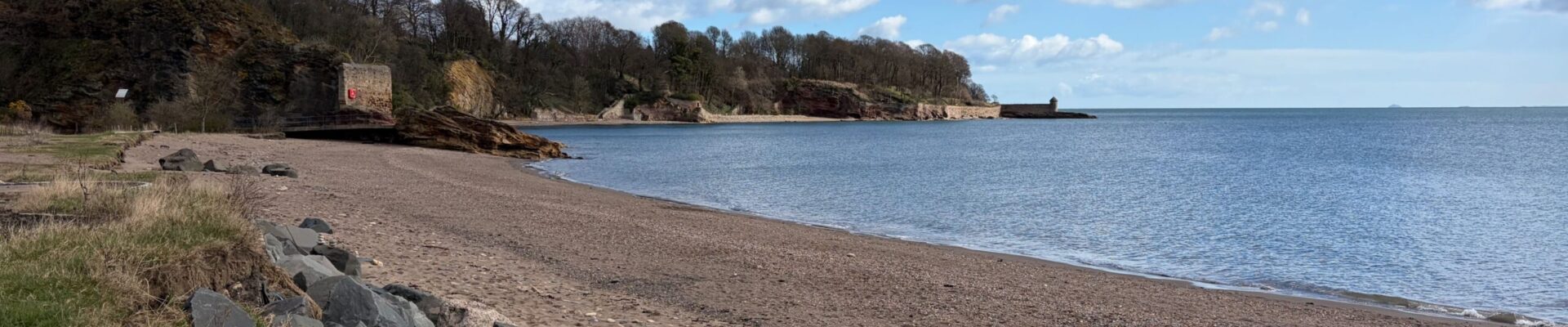 This sheltered beach to the north of Kirkcaldy lies in the shadow of the 15th Century Ravenscraig Castle and is easily accessible with a large car park. On arrival, the beach doesn’t hold much appeal, but I notice a gap in the rocks at the castle end, which on further exploration leads to a much nicer smaller bay. Still, I only spend a few minutes here. Time to move on.