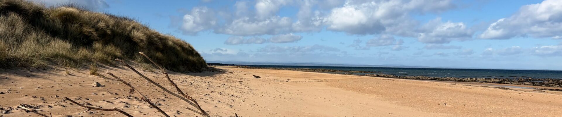 If I’m really honest, the last few beaches on this anti-clockwise tour of the Fife coast have been a little underwhelming, and I’m in need of a good, bracing leg-stretch to regain the motivation before I reach St Andrews. Step forward Cambo Sands, or Kingsbarns Beach. This is more like it. A single track road from the village of Kingsbarns takes me down to the surprisingly large car park and it’s a short walk through the extensive dunes to a two-mile stretch of golden sand. It’s windy and the waves are ripping up the shore. Hundreds of daffodils emerge from the dune network at one end and I walk along the top of the ridge for some way before dropping onto the beach. Lovely.