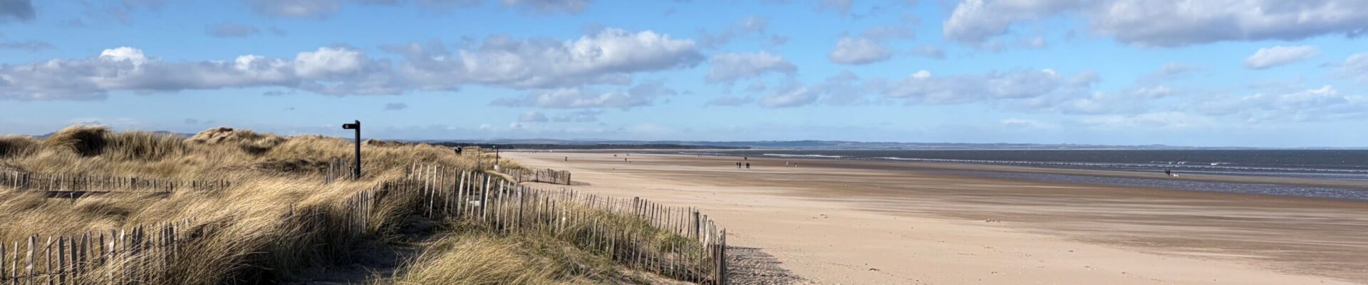Wow, this is better than I expected! After the slight disappointment of East Sands, I make my way through the town to find a space in the golf course car park. It’s Saturday afternoon, the sun is shining, music is playing from nearby cafes and picnics, and it’s pretty busy all round. But as I emerge through a gap in the fenced-off dunes, the absolute epic splendour of West Sands reveals itself. The sheer scale of this beach completely dwarfs the human activity (there are actually fewer people on the beach than I expected) and the hustle and bustle of the town behind me is completely forgotten. Of course this is a very famous Scottish beach – Chariots of Fire and all that – but it totally deserves the accolades. It’s cinematic. It’s possible to walk for miles but I reluctantly have a five hour drive ahead and I still want to pop up to Tentsmuir before I leave. Still, I have a good bracing walk before returning to the car, past the Old Course and out of town. Special.